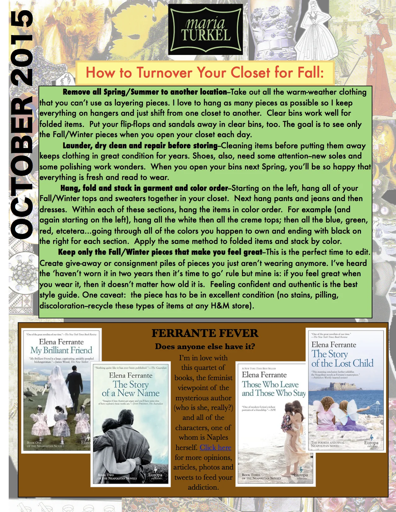 Launder, dry clean and repair before storing--Cleaning items before putting them away keeps clothing in great condition for years. Shoes, also, need some attention--new soles and some polishing work wonders. When you open your bins next Spring, you’ll be so happy that everything is fresh and read to wear.
