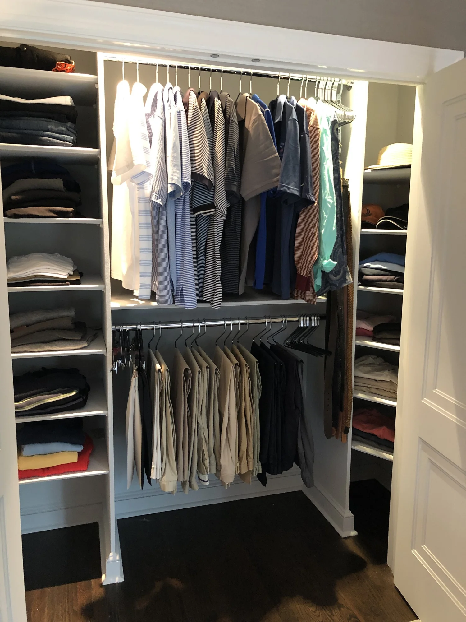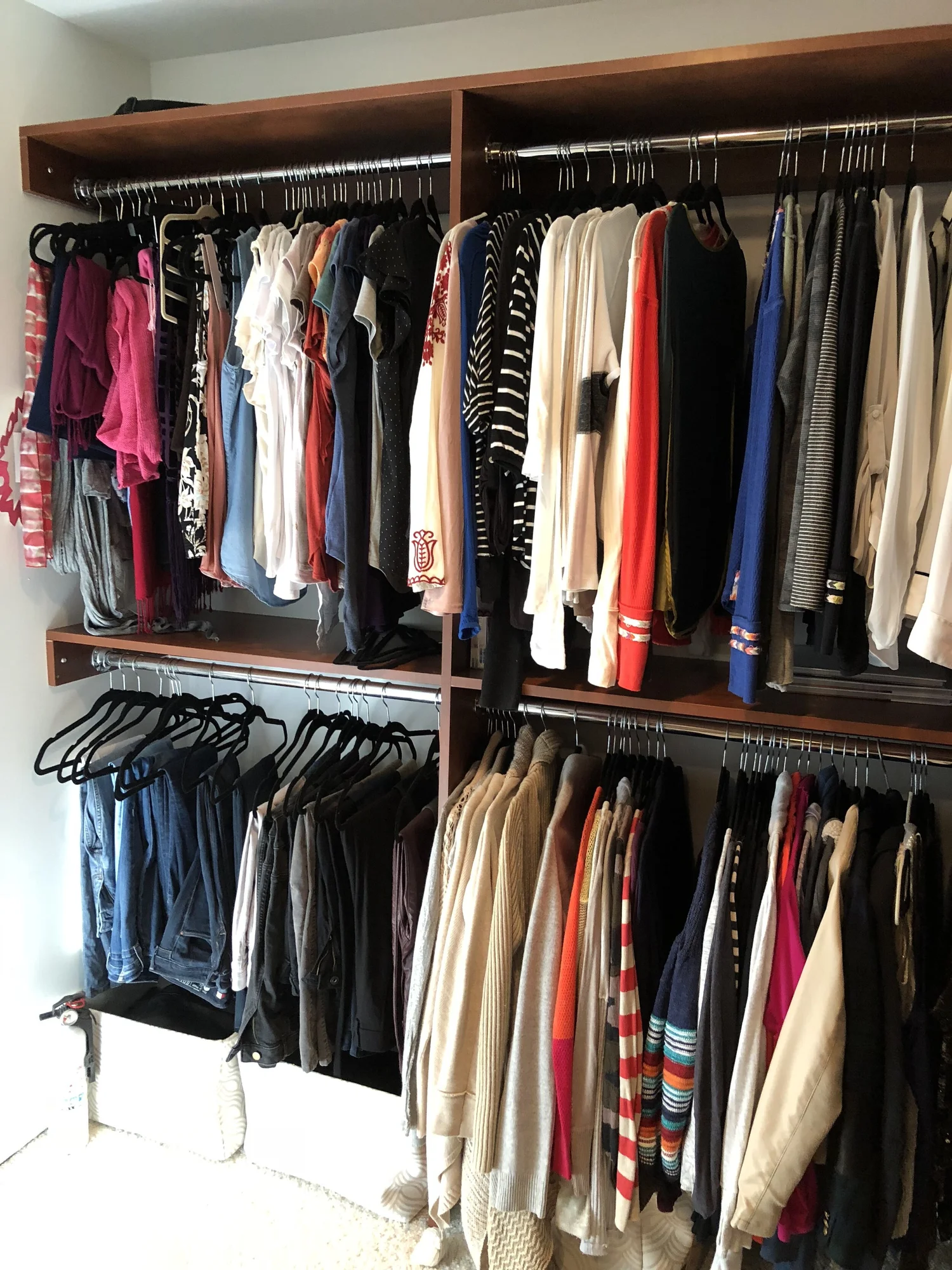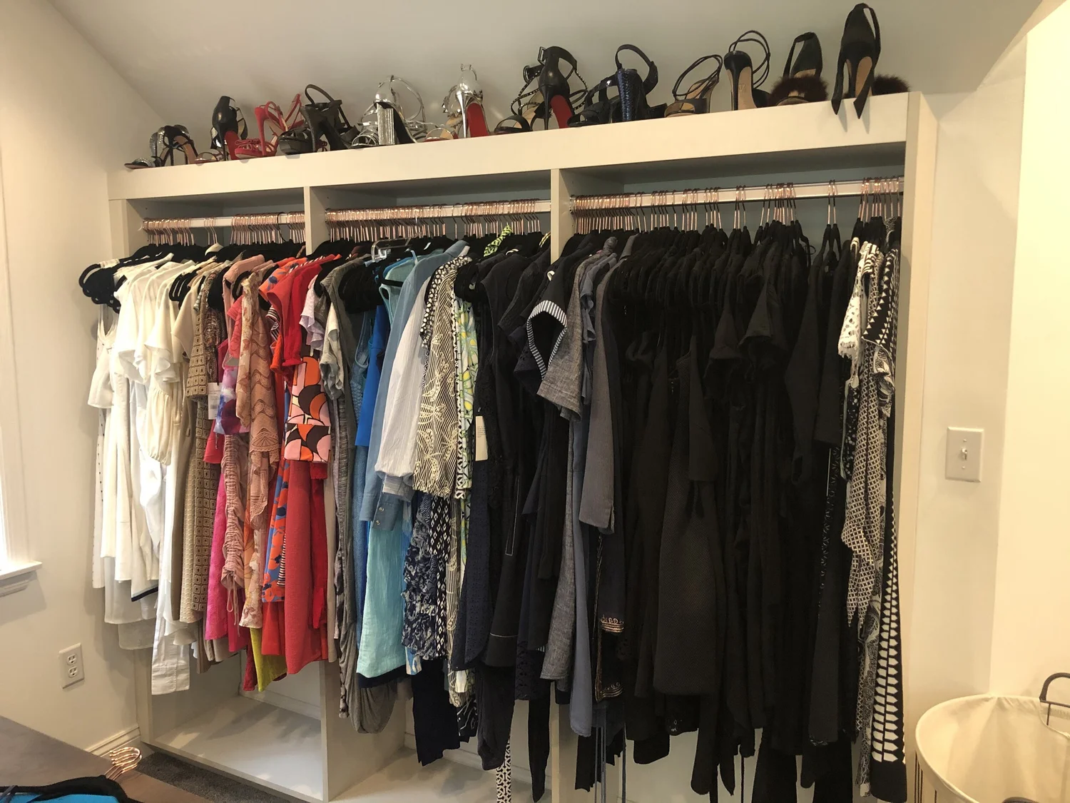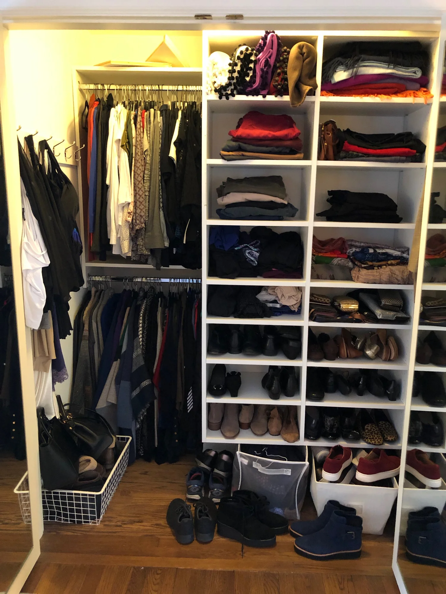 Current season should be front and center. Off season pieces should be stored in another closet or the attic.