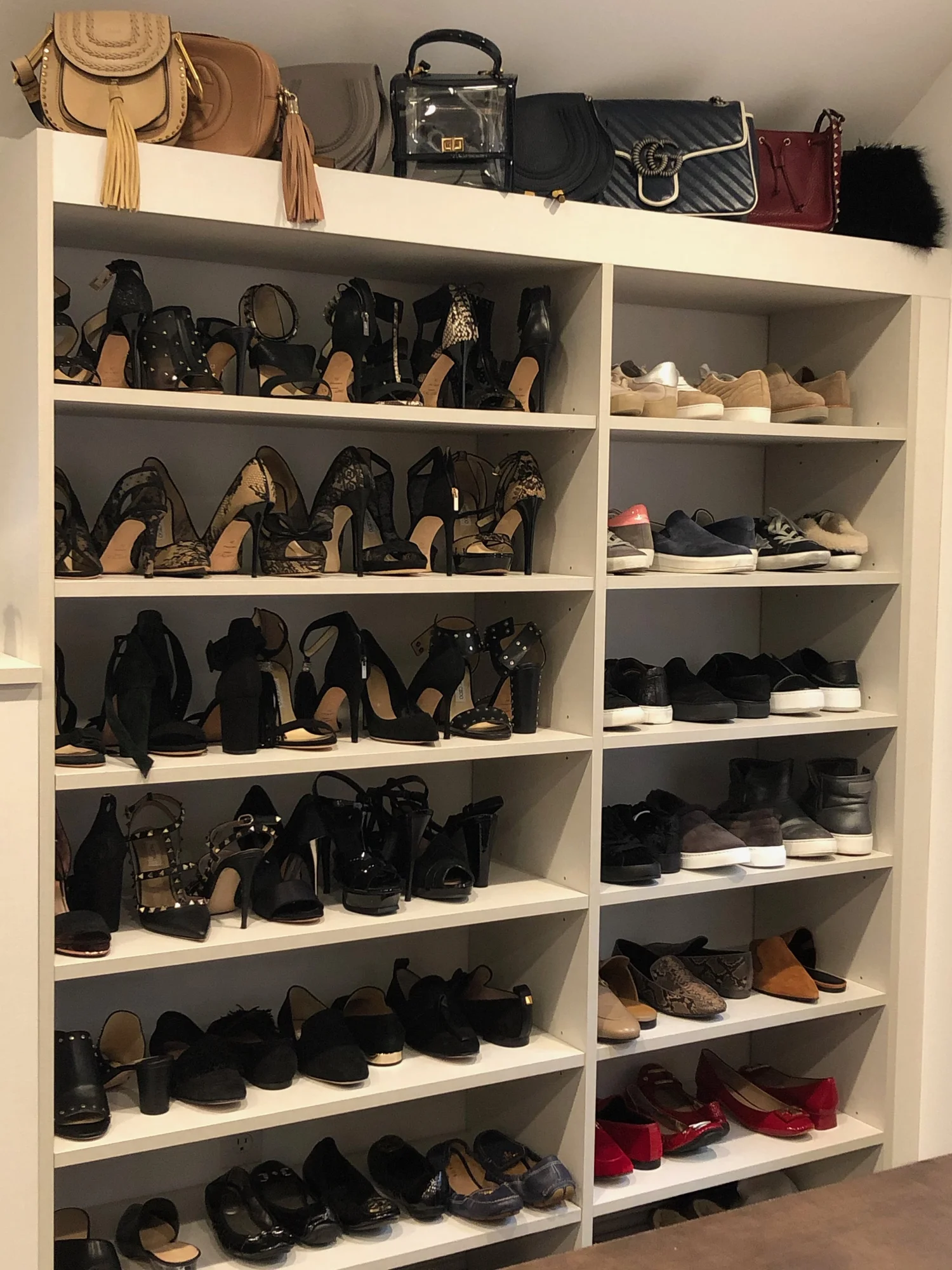 Display shoes and bags so you can easily see all.